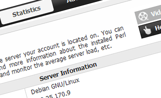This section will give you elaborate info about the web hosting server your web hosting account is located on. You can check the Operating System, the physical IP address and the current PHP/Perl/MySQL versions used, find more information about the installed Perl modules and the POP3/IMAP and SMTP mail servers, monitor the server load, etc.